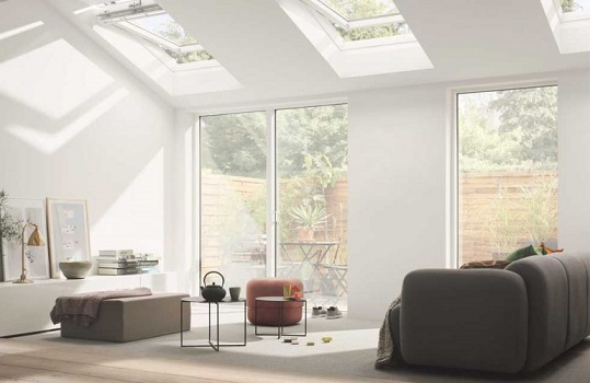 Les fenêtres et les portes, dans l’architecture d’intérieur contemporaine, ne sont pas placées comme des éléments décoratifs ou comme des parties de compositions symétriques. Elles sont principalement considérées comme des éléments fonctionnels et sont conçues comme telles. Si les fenêtres sont créées et placées avec soin pour la lumière, la ventilation, l'air et la vue, un traitement décoratif est souvent inutile et un simple dispositif tel qu'un store, un volet, un rideau et une draperie suffira à contrôler la lumière et l'intimité. Les considérations essentielles pour les fenêtres devraient en principe être basées sur les besoins fonctionnels et sur l'intention esthétique globale.