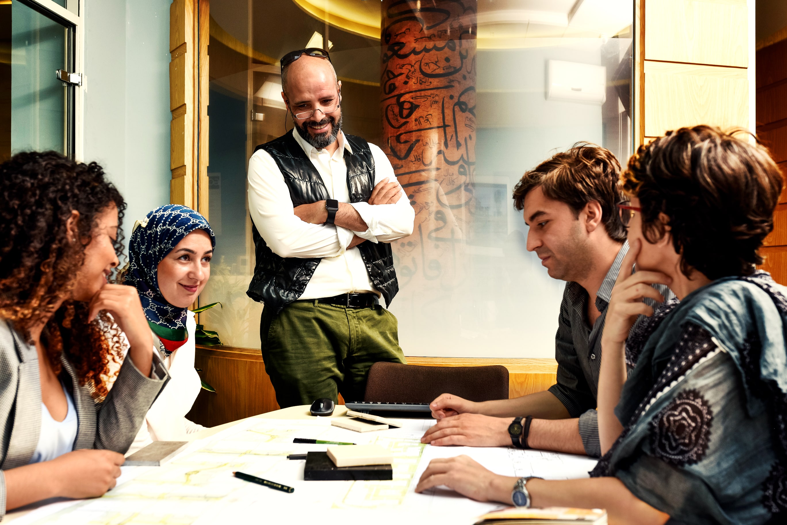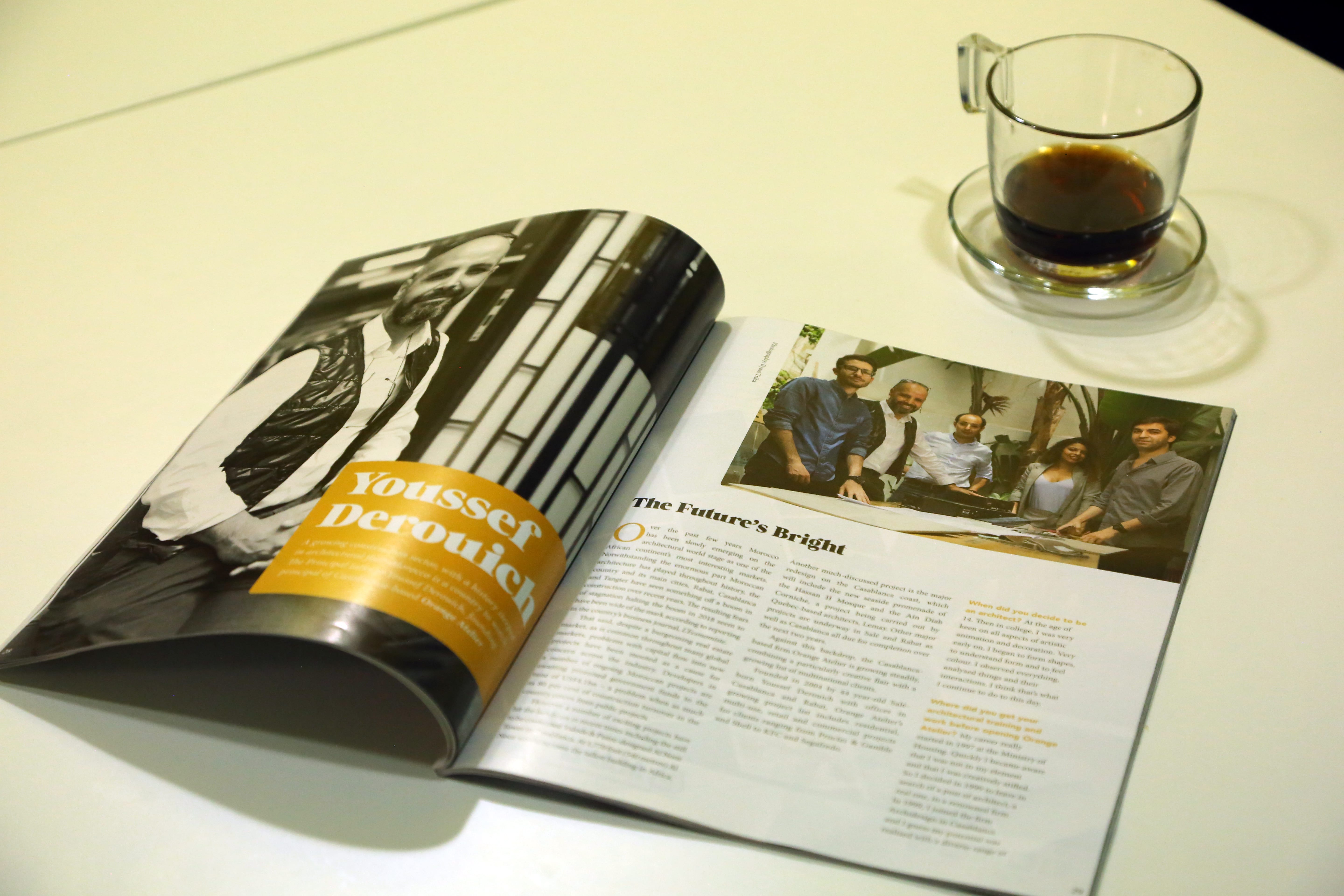 Youssef Derouich a été diplômé en 1997 à l’ENA de Rabat. Son parcours fut des plus brillants. Il obtint plusieurs certificats de formation continue au Maroc et à l’étranger : développement durable, nouveautés technologiques dans la thermie solaire et photovoltaïque, efficacité énergétique, dynamique de la productivité personnelle, finance et leadership personnel : son esprit s’est approvisionné partout. Ces formations se déroulaient parallèlement à ses activités professionnelles. En effet, il fut, de 1997 à 1998, architecte à la direction de la promotion immobilière, à Rabat, dans l’Observatoire national de l’habitat ; puis, pendant un an, chargé du service parc et logement, dans le même lieu. De 1999 à 2003, il fut chef de production au cabinet Archidesign, à Casablanca. Il conçut divers types de projets : résidentiel, institutionnel, industriel, médical et de loisirs ; contrôlait les travaux, encadrait les projeteurs et évaluait leurs plans. De cette même société, il devint en 2004 le directeur associé. Ses responsabilités s’étendirent jusqu’à la gestion financière et administrative du cabinet. Il fonda, en 2009, à Casablanca, son actuelle société Orange Atelier – Derouich Architecte & Associés, dont il est directeur général. Cette entreprise, dont l’importance grandit, et qui constitue un projet séduisant, ne compte pas moins de trente collaborateurs. Son travail consiste dans le pilotage du système managérial aux normes ISO, dans l’élaboration et la réalisation de stratégies générales, dans la prospection commerciale, la validation de concepts et l’encadrement des équipes administratives et techniques.