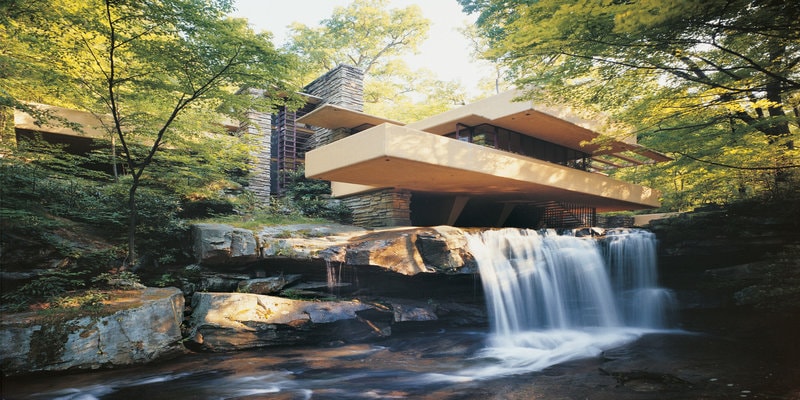 La création la plus connue de l’architecte américain de renom Frank Lloyd Wright est bel et bien Fallingwater ou La Maison sur la cascade en français, située au Mill Run à Pennsylvania. Cette maison réalisée au profit de l'homme d'affaire Edgar J Kauffman entre 1936 et 1939 a gagné son immense notoriété grâce à son design en porte-à-faux inspiré par l'architecture japonaise ainsi que son intégration avec la forêt autour.