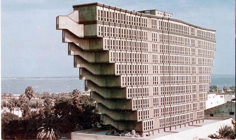 Le brutalisme embrasse à la fois la symétrie et l'asymétrie. La bibliothèque Geisel, conçue par William Pereira à San Diego en 1970, témoigne de la remarquable symétrie de l'architecture brutaliste. Les piliers de soutien inclinés, surmontés des pointes acérées d'un sommet couronné, sont fascinants.